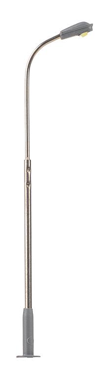 Moderne und weitverbreitete Peitschenleuchte. Besonders geeignet zur Ausgestaltung von Stadt-, Straßen- und Industrieszenerien. Der Mast ist aus Metall gefertigt und die Leuchtenhöhe variabel einstellbar. Die filigrane einflammige Leuchte ist mit langlebiger LED-Technik ausgestattet. Höhe: 65 mm.