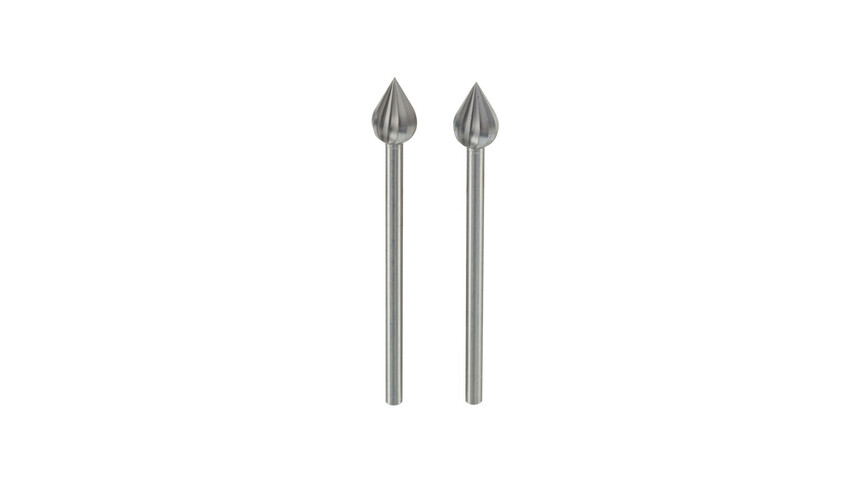 Technische Daten: Schaft: Ø 2,35 mm; Fräskörper Flamme: 6,0 mm; 2 St.