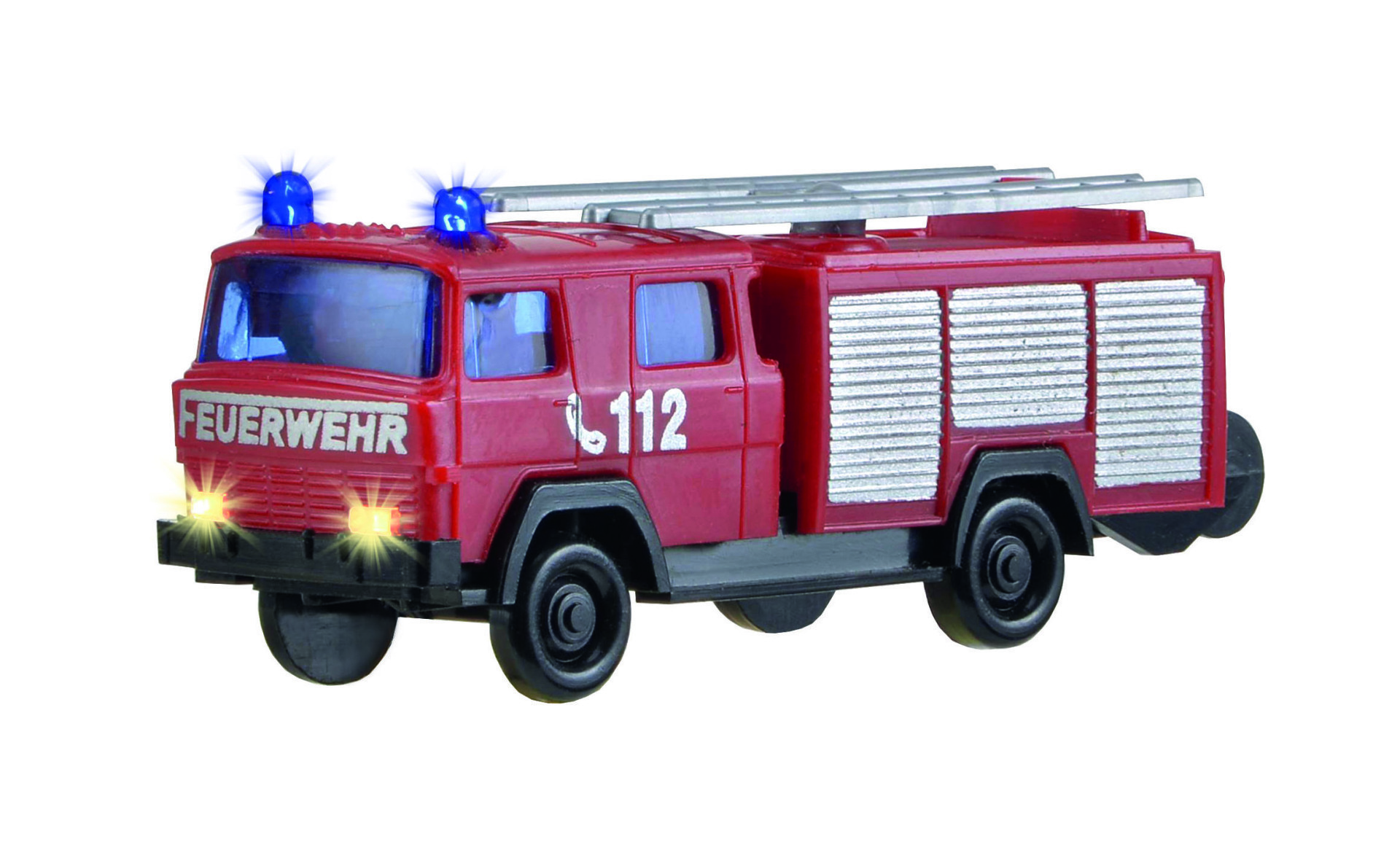Mit 2 funktionsfähigen Blaulichtern, Blinkelektronik sowie Front- und Heckbeleuchtung. Basismodell: Wiking. Ersatzglühlampen Art. 3506, 3515. Das passende Soundmodul Art. 5559 erzeugt die realistischen, auf das Fahrzeug abgestimmten Geräusche. Es verfügt außerdem über 7 frei wählbare Soundvarianten.