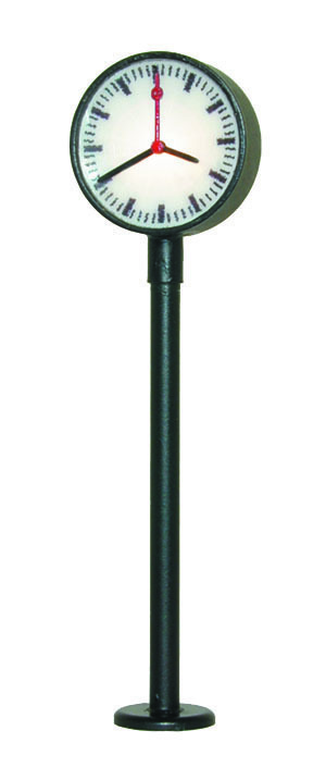Zeitanzeige ohne Funktion. Vorbildgetreuer Messingmast mit Patentsteckfuß für eine besonders einfache Montage. Wartungsfrei dank LED-Beleuchtung. Höhe: 2,5 cm.