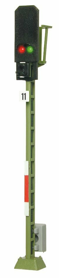 Signal der Einheitsbauart. Messingmast in filigraner Fotoätztechnik hergestellt. Originalgetreue Lackierung. Für alle Analog- und Digitalsysteme geeignet. Mit Patentsteckfuß. Sehr einfache Montage, sehr einfacher Anschluss. Mit 2 LEDs, wartungsfrei. Signalbilder Hp0 und Hp1. Passendes Steuermodul: Art. 5221. Höhe: 7,9 cm.