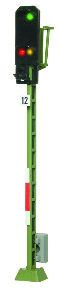 Signal der Einheitsbauart. Messingmast in filigraner Fotoätztechnik hergestellt. Originalgetreue Lackierung. Für alle Analog- und Digitalsysteme geeignet. Mit Patentsteckfuß. Sehr einfache Montage, sehr einfacher Anschluss. Mit 3 LEDs, wartungsfrei. Signalbilder Hp0, Hp1 und Hp2. Passendes Steuermodul: Art. 5222. Höhe: 7,9 cm.