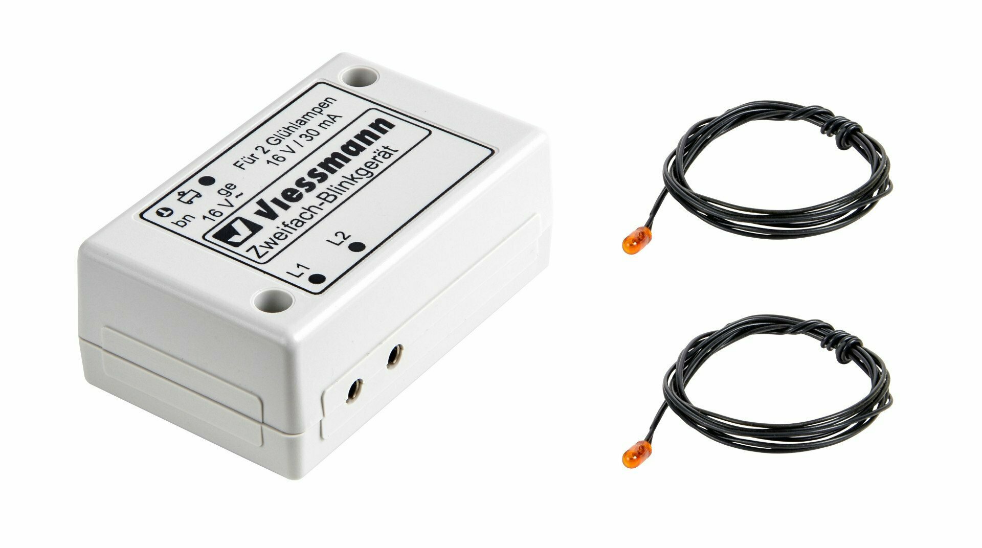 Diese Blinkelektronik ist geeignet, um Modellfahrzeuge mit sehr realistisch wirkendem Blinklicht auszustatten. Die spezielle Blinkschaltung wird unter der Anlage montiert und erzeugt den täuschend echten Eindruck von rotierendem Rundumlicht. Betrieb nur mit Wechselspannung zulässig. Ersatzglühlampen Art. 3506 (2x blau), Art. 3507 (2x gelb), Art. 3508 (2x rot) und Art. 3509 (2x klar).