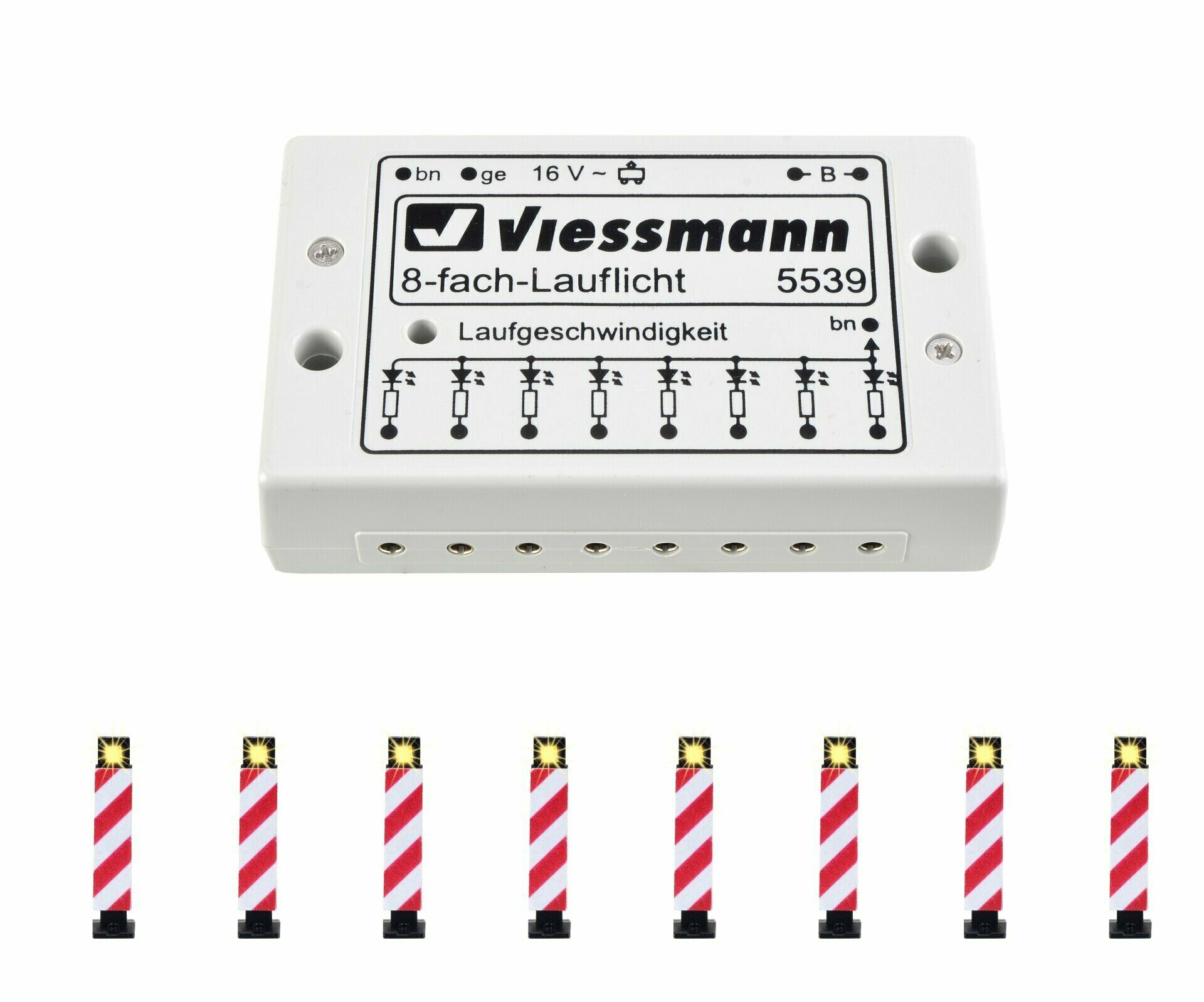 Mit Patentsteckfuß für besonders einfache Montage. Wartungsfrei dank LED-Beleuchtung. Die Laufgeschwindigkeit ist an der Elektronik einstellbar und es können 2 Funktionen geschaltet werden: Funktion A: Die Ausgänge werden einzeln nacheinander durchgeschaltet, d. h. es brennt immer nur eine Lampe bzw. eine LED. Funktion B: Die Ausgänge werden nacheinander eingeschaltet und dann zusammen ausgeschaltet.