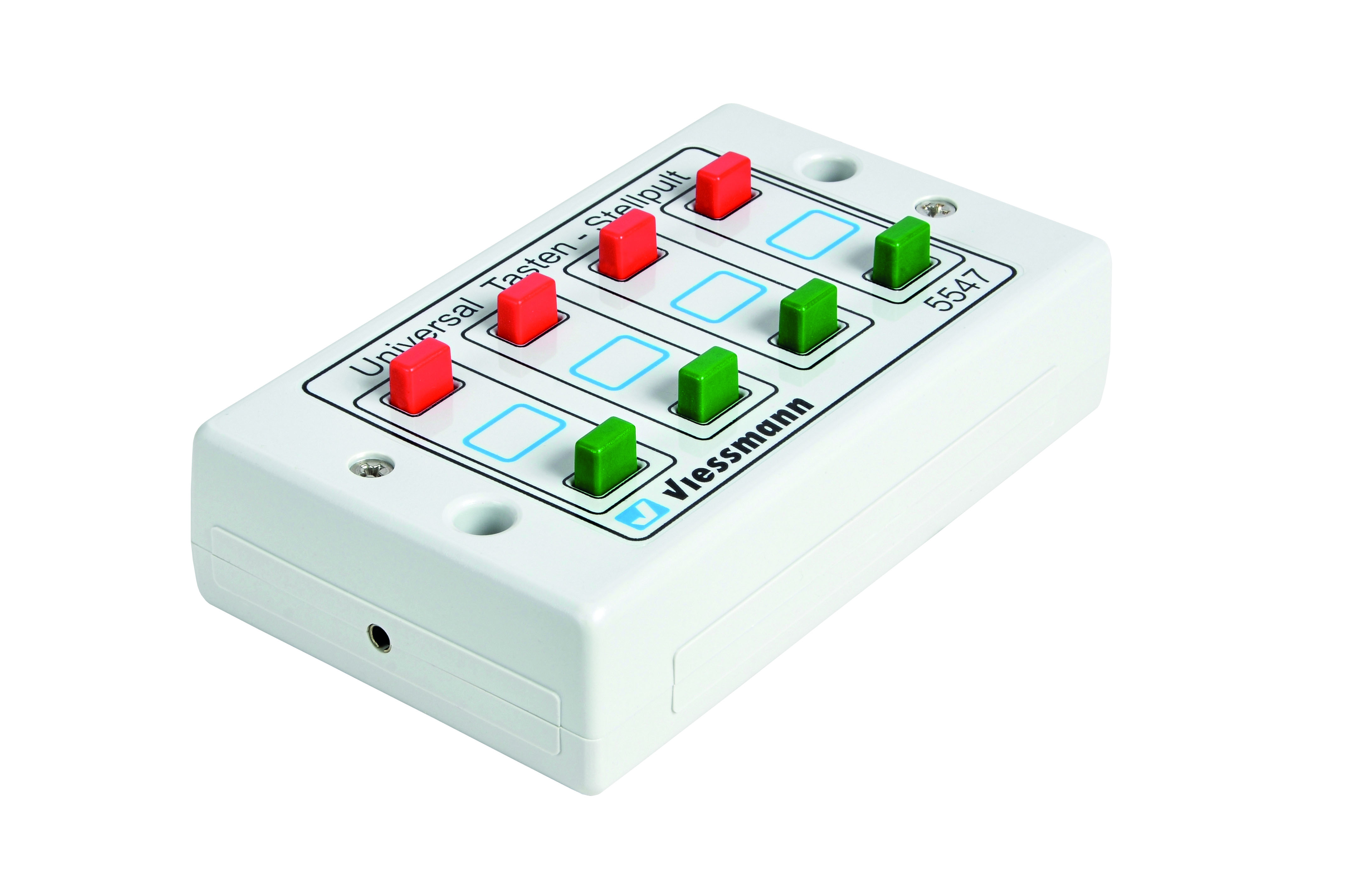 Mit Momentkontakt für 4 Weichen bzw. 2-begriffige Formsignale oder bis zu 8 Entkupplungsgleisen. Speziell auch geeignet für das Hobby-Licht-Blocksignal Art. 4021, den Signalsteuerbaustein Art. 5210, das elektronische Relais Art. 5552 sowie das Steuermodul für Licht-Blocksignale Art. 5221. Im analogen Einsatz steuert das Stellpult auch die Steuermodule für Lichtsignale Art. 5224, 5229 und 52292, wenn daran 2-begriffige Signale angeschlossen sind. Mehrere Pulte können aneinandergereiht werden. Gemeinsamer Massekontakt für alle Tasten, Belastbarkeit je Taste: 2 A.