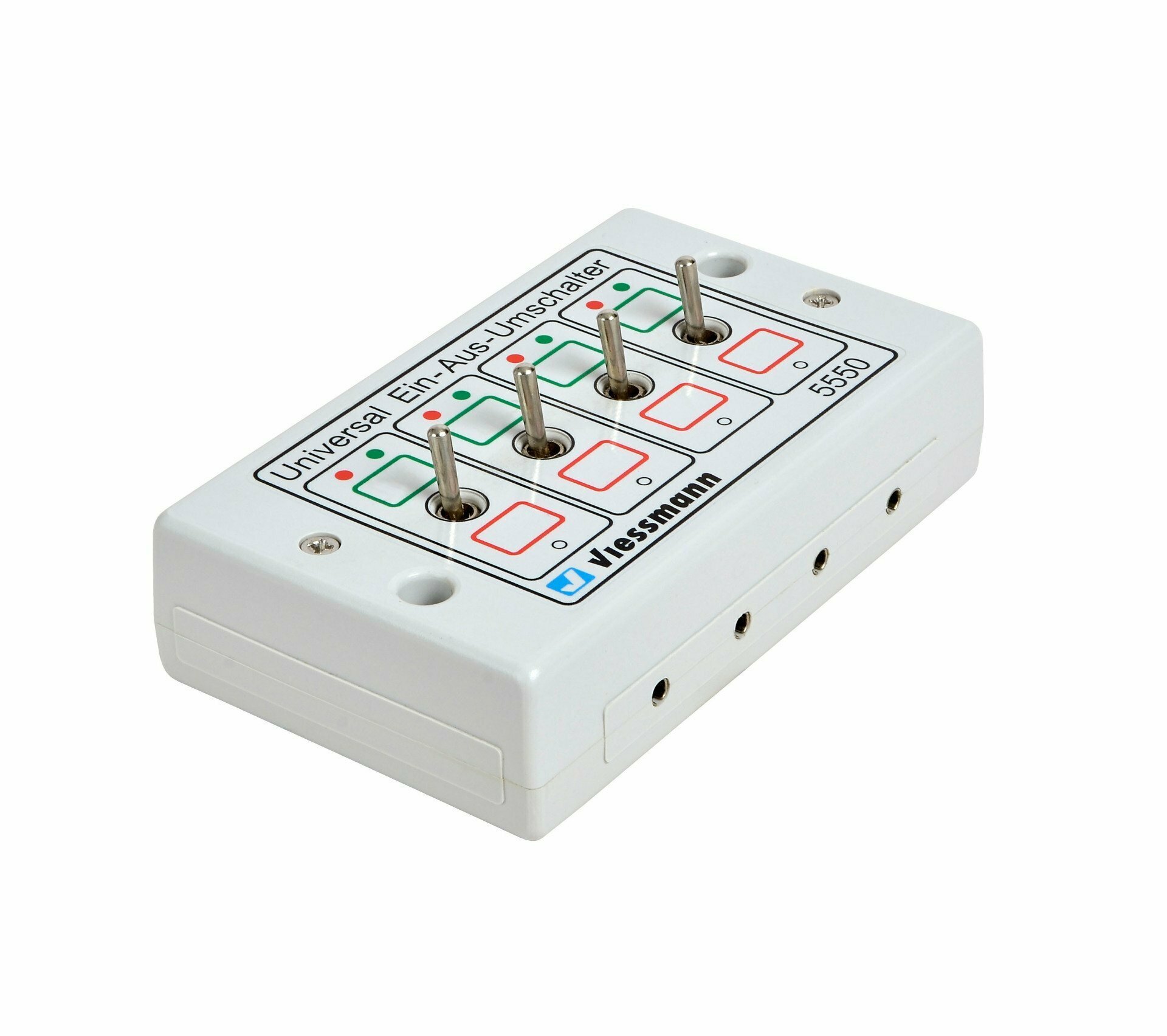 4 Umschalter zum einfachen Schalten von Beleuchtungen, Lichtsignalen und dauerstrombetriebenen Artikeln. Zur Zugbeeinflussung durch beiliegende Koppelhebel umwandelbar in zwei 2-polige Umschalter. Kontaktbelastbarkeit: 2 A.