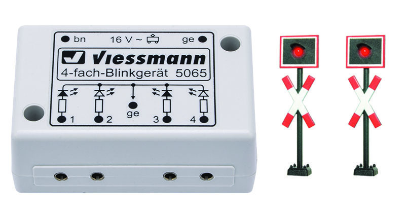 Dieses Set besteht aus 2 Andreaskreuzen und einer Blinkelektronik Art. 5065. Wartungsfrei dank LED-Beleuchtung. Für einen automatischen Betrieb sind zusätzlich das elektronische Relais Art. 5552 und Schaltgleise bzw. Schaltkontakte erforderlich. Höhe: 19 mm. TIPP: Das Soundmodul Art. 5556 erzeugt die passenden Geräusche.