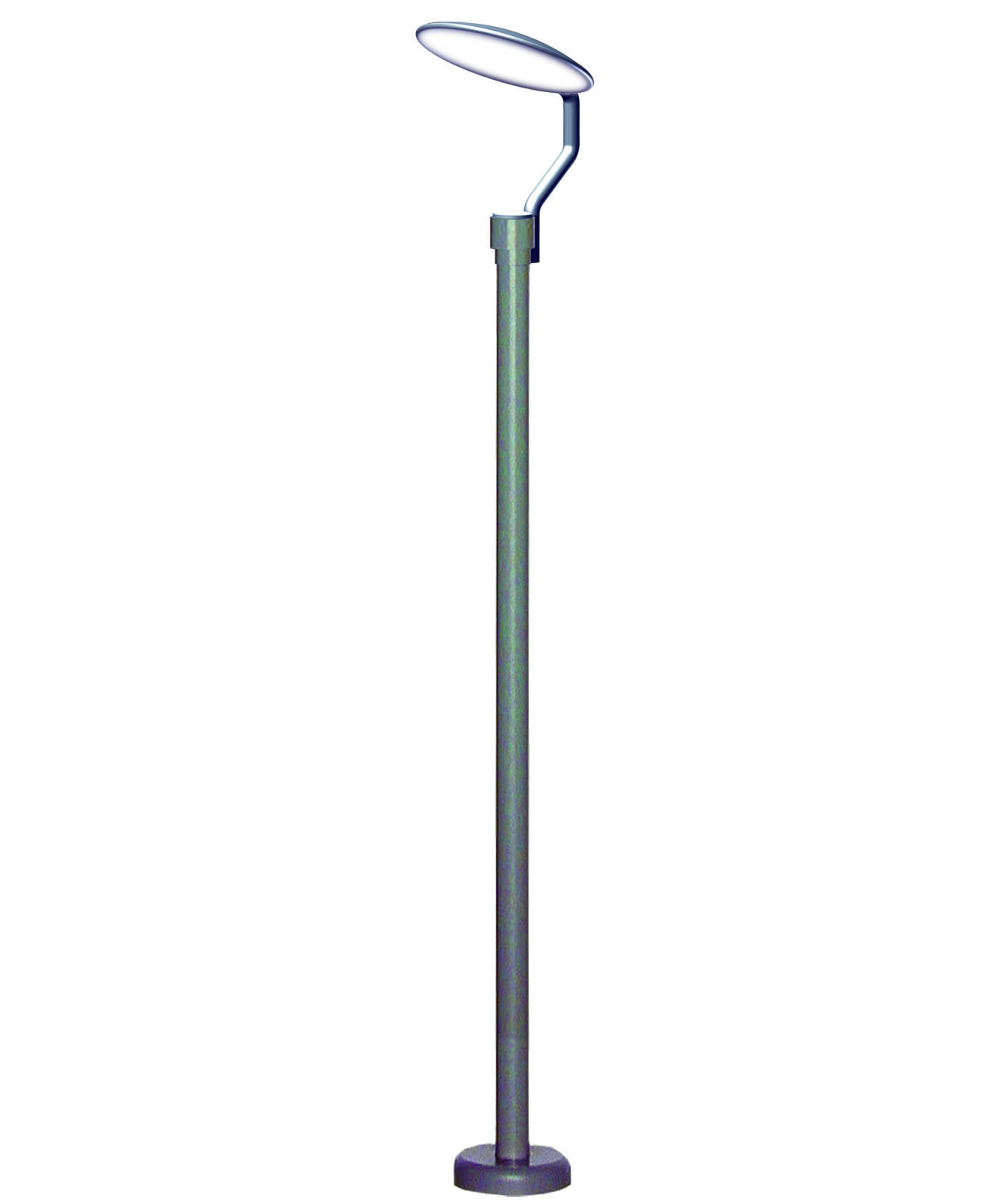 Vorbildgetreuer Messingmast mit Patentsteckfuß für eine besonders einfache Montage. Wartungsfrei dank LED-Beleuchtung. Moderne Straßenleuchte mit Tellerreflektor zur weiträumigen, diffusen Ausleuchtung. Im Original beispielsweise im Berliner Regierungsviertel und an modernen Bahnhöfen zu finden. Höhe: 75 mm. TIPP: Das Powermodul Art. 5215 sorgt für flackerfreies Licht beim Betrieb mit Wechselstrom und erzeugt nahezu doppelte Helligkeit.