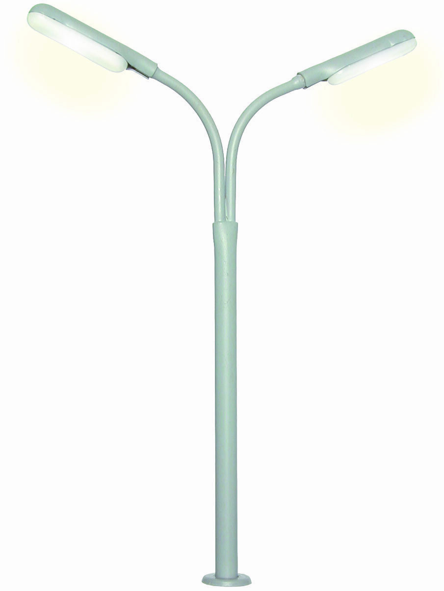 Straßenlaterne im Stil der Epoche III – VI. Vorbildgetreuer Messingmast mit Patentsteckfuß für eine besonders einfache Montage. Wartungsfrei dank LED-Beleuchtung. Höhe: 100 mm. TIPP: Das Powermodul Art. 5215 sorgt für flackerfreies Licht beim Betrieb mit Wechselstrom und erzeugt nahezu doppelte Helligkeit.