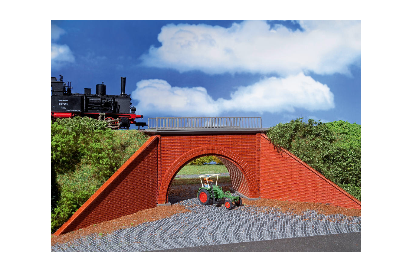 Ein Durchlass ist eine interessante Ergänzung für die Anlage. So kann die erhöhte Gleisführung beibehalten und die Landschaft bereichert werden. Maße: L 10/30 x B 6,3 x H 8 cm.