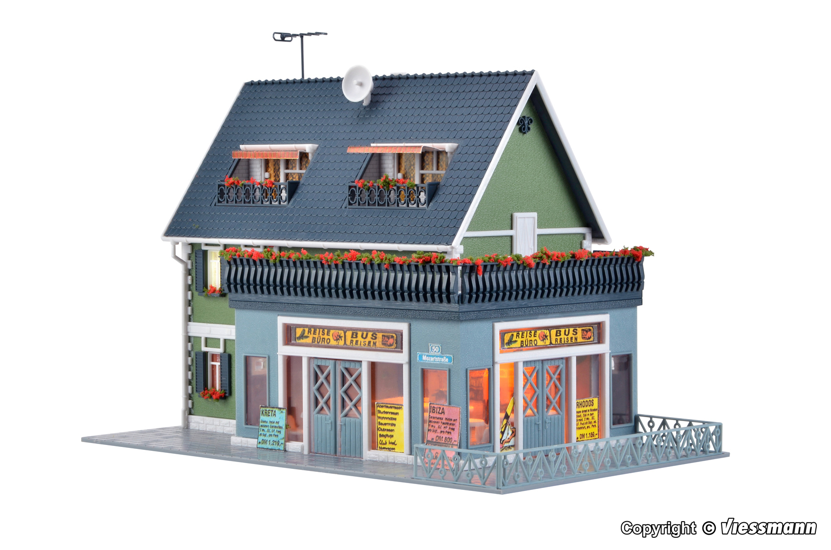 Vollmer 43616 H0 Reisebüro mit Inneneinrichtung und Beleuchtung, Funktionsbausatz