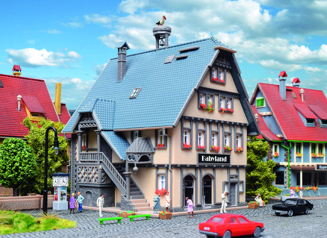 Durch die Schaufenster können die Kunden einen Blick in den Laden und auf die angebotenen Waren werfen. Die passende Innenbeleuchtung setzt alles ins rechte Licht. Maße: L 10,6 x B 9,5 x H 12,8 cm.